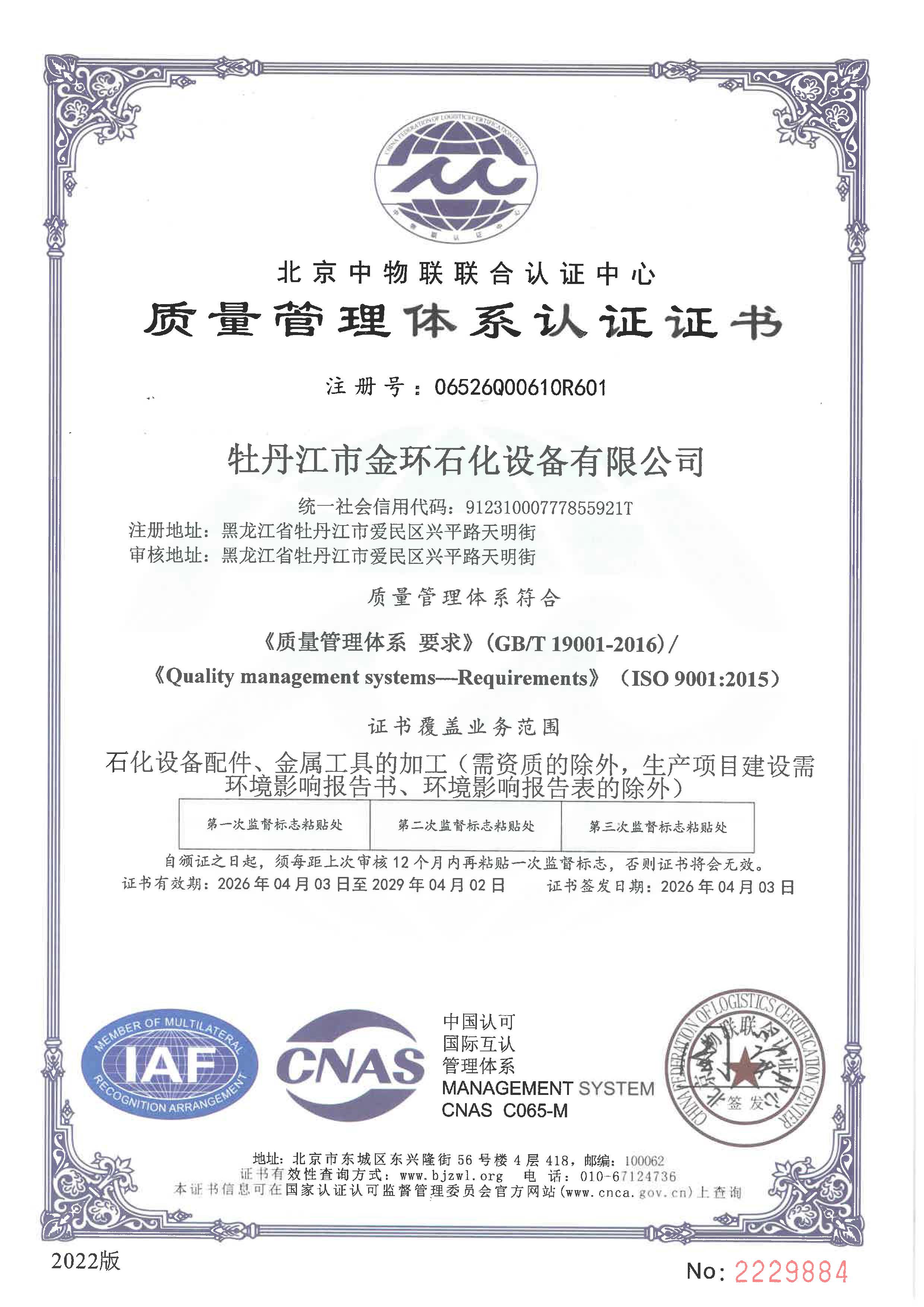 質(zhì)量管理體系證書