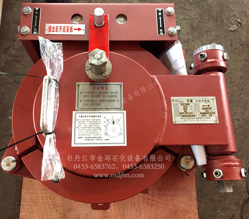快開盲板是用于壓力管道或壓力容器的圓形開口上的一種機械裝置。一般由筒體法蘭、頭蓋、勾圈或卡箍、密封圈、安全聯(lián)鎖機構(gòu)、開閉機構(gòu)、轉(zhuǎn)臂及短節(jié)(需要時)等部件構(gòu)成。